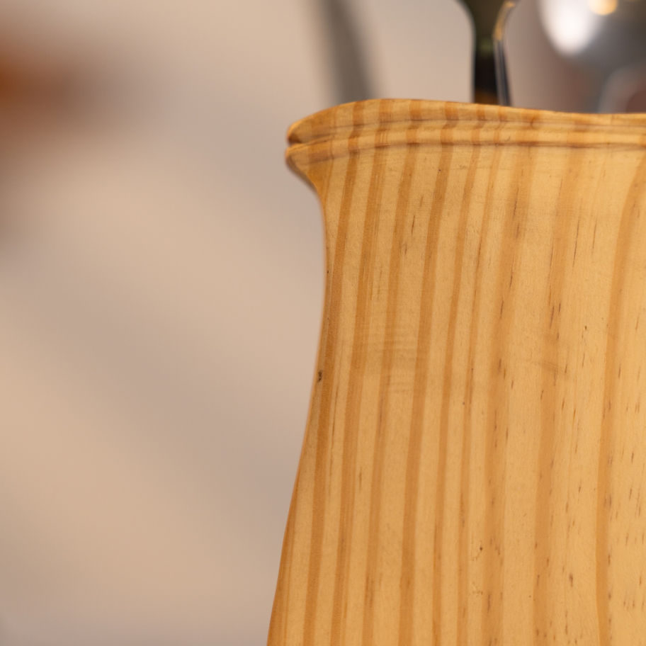 Rustic and refined, this cutlery holder is hand-carved from solid wood in the form of a graceful jug. Its simple silhouette highlights the natural textures and grains of the timber - each piece carrying its own distinct markings, like fingerprints left by the earth.
